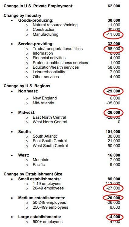 The ADP National Employment report printed a better than expected +62k jobs added in March (+40k exp) and modestly down from an upwardly revised 66k in February.