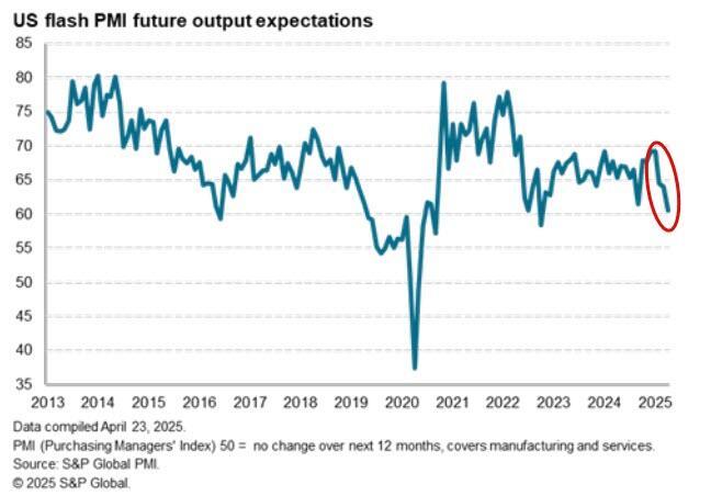 The responses for today’s flash PMI reports were collected between the 9th and 22nd of April, implying that the majority of the responses should reflect both the reciprocal tariff announcement and implementation of 10% baseline and critical industry tariffs, as well as the 90-day reciprocal tariff delay on April 9th.