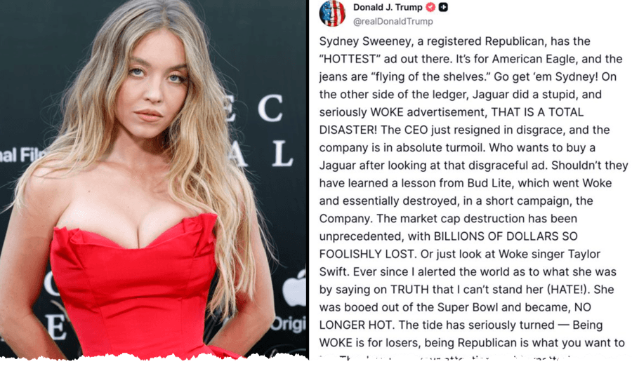 American Eagle's sexually charged ad campaign featuring "Sydney Sweeney has great jeans" has triggered outrage among liberals across the Western world, furious that a beautiful young blonde is the face of the campaign instead of a "diverse," morbidly obese man pretending to be a woman.