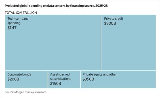 In other words, despite the fear-mongering of the media, default risks remain exceptionally low. So, why this spike? Because tech firms are raising huge sums to build AI data centres and platforms, which took the markets a bit by surprise. Oracle alone plans a $38 billion debt raise and could see net debt near $290 billion by 2028.