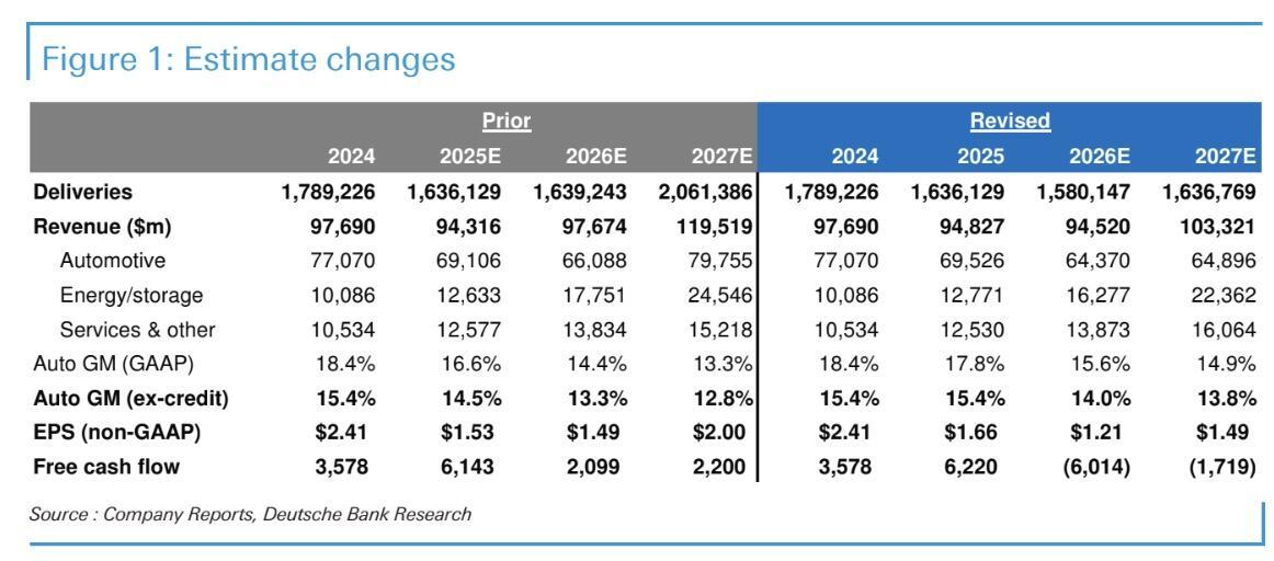 Despite its bullish view on AI, Deutsche slightly trimmed its numbers. It cut earnings and revenue forecasts and lowered its price target from $500 to $480, while keeping a Buy rating. The reduction reflects more conservative assumptions on vehicle sales and slower model rollouts, along with a revised valuation that separates FSD, robotaxis, and robotics into distinct businesses.