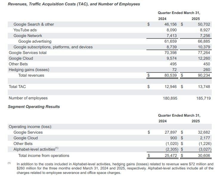 - Google Services operating income $32.68 billion, +17% y/y, estimate $30.42 billion
