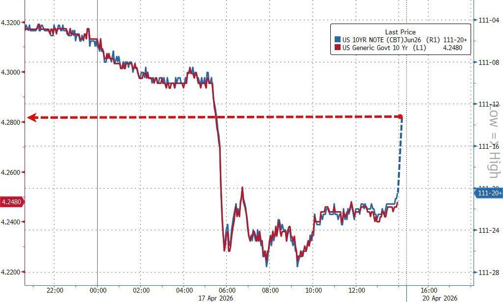 Treasury futures are down, implying around a 5bps jump in 10Y Yields...