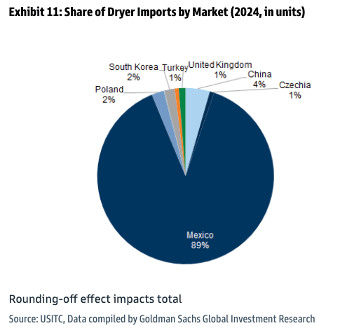 Exhibit 11: Share of Dryer Imports by Market (2024, in units)