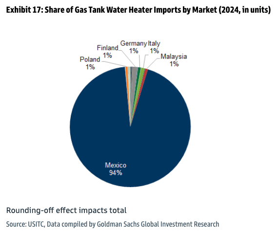 Exhibit 17: Share of Gas Tank Water Heater Imports by Market (2024, in units)