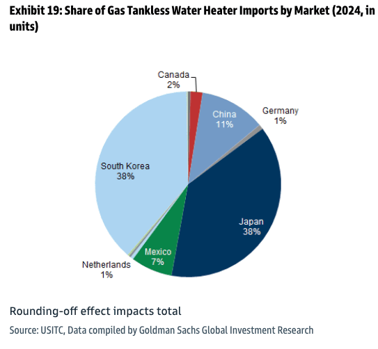 Exhibit 19: Share of Gas Tankless Water Heater Imports by Market (2024, in units)