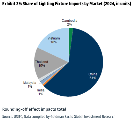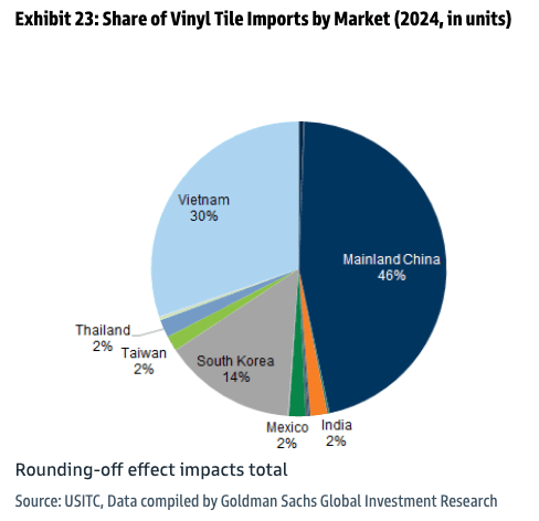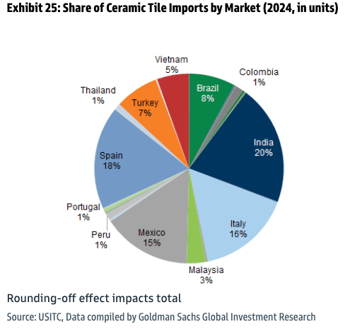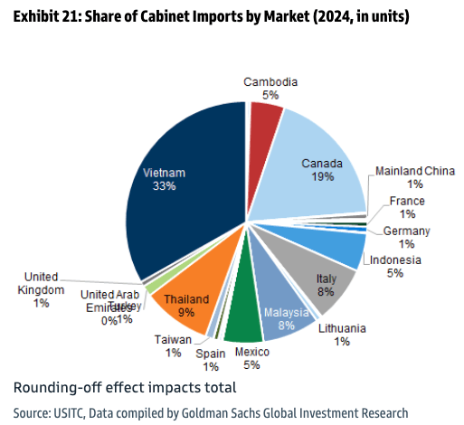 Goldman analysts Susan Maklari, Charles Perron-Piche, and Rhea Bhatia cited United States International Trade Commission data to help clients understand where the most basic imported home goods and building materials were sourced from in 2024.