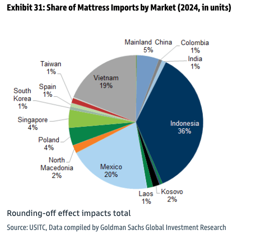 Exhibit 31: Share of Mattress Imports by Market (2024, in units)