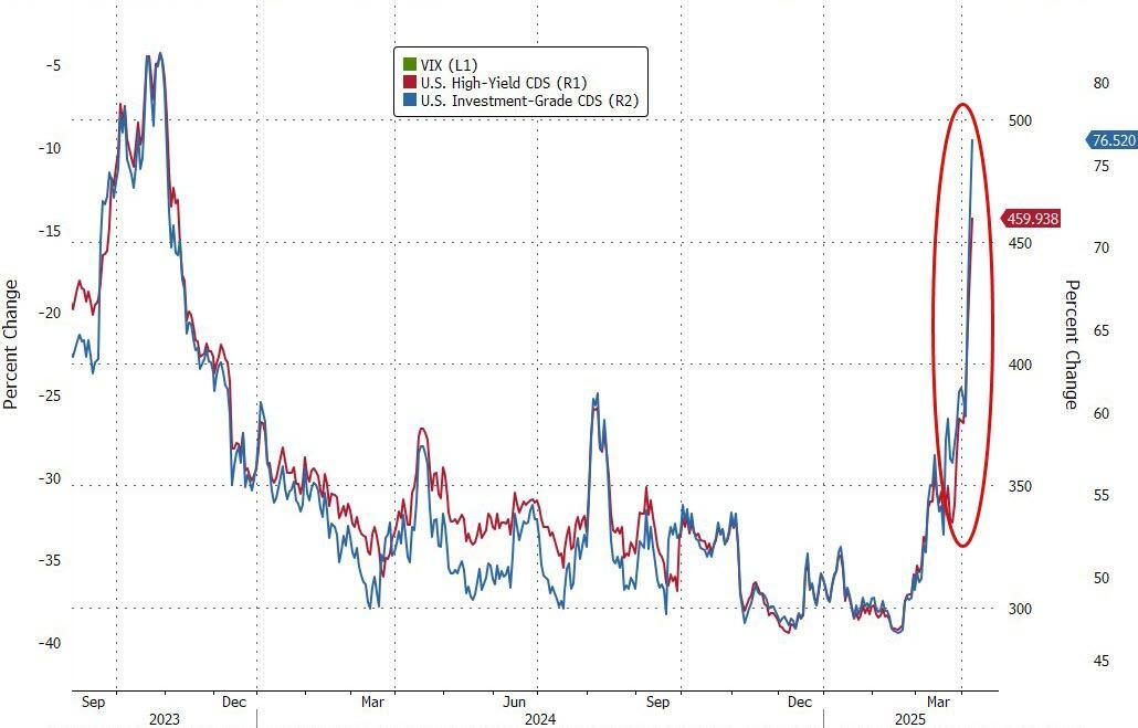 And while stocks have rebounded (amid utter chaos and headline roulette), credit market remain stressed and Saba Capital Management founder Boaz Weinstein warned Bloomberg that the selloff in corporate bonds accelerate by tariffs tensions could spur a wave of bankruptcies that may ramp up faster than in previous market crises... and The Fed is hamstrung from taking action (cutting rates to save the world) because of inflation fears.