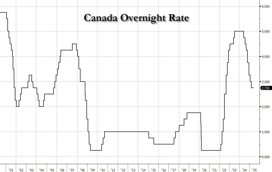 Bank of Canada Keeps Rates At 2.75% As Expected, As It Waits To See Impact Of Trump Tariffs