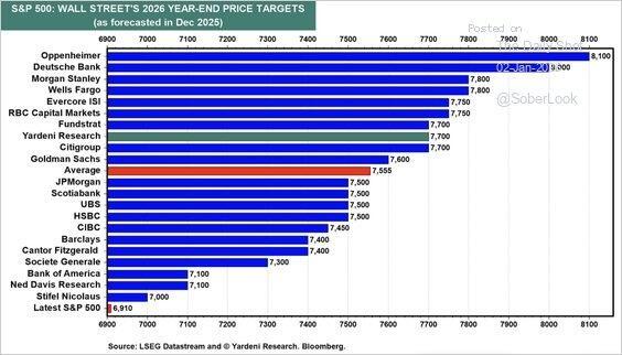 Third, earnings growth estimates are very optimistic. As we head into 2026, strategists are hopeful that the bottom 493 stocks will begin to grow earnings aggressively. As noted previously: