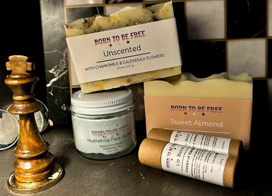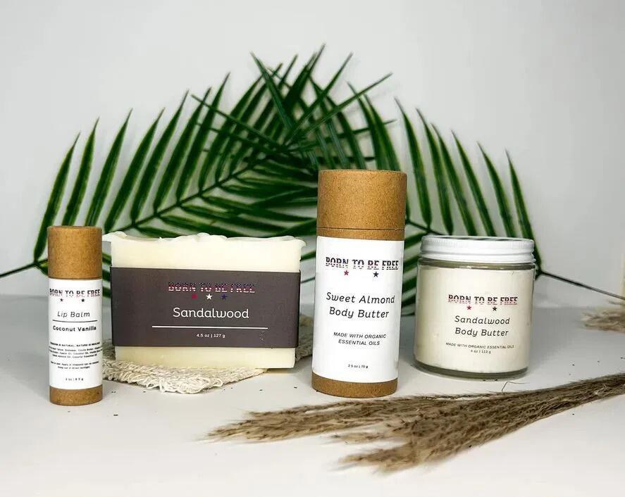 - Cattleman's Skincare Collection; Sandalwood Body Butter (4oz), Sandalwood Tallow Soap Bar (4.5oz), Sweet Almond Body Butter (2.5oz), Coconut Vanilla Lip Balm (.3oz)