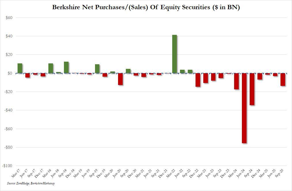 With less than two months left until the Berkshire Hathway becomes just another company after the 95-year-old Warren Buffett exits as CEO at the end of the year, there is still some (waning) interest in what this massive long only fund with a record $382 billion in cash, is buying and selling, or as we recently discussed, mostly selling. Which is why today's 13F deadline is usually a reason for the Berkshire faithful to promptly check out the company's latest stock holdings on Edgar.com.