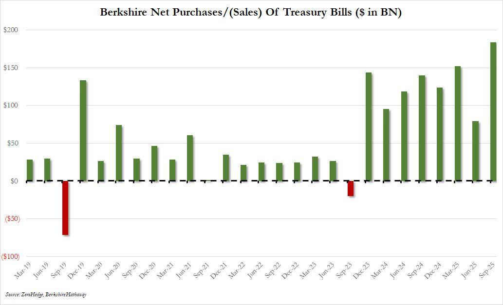 Berkshire's Cash Pile Hits A Record $382 Billion Amid Continued Stock Sales As T-Bill Purchases Soar