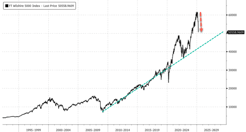 Before we provide readers with Bessent's response, here's a chart of the WILSHIRE 5000 over 15 years versus Welker's claim that Americans were somehow financially paralyzed last week by the stock drop.