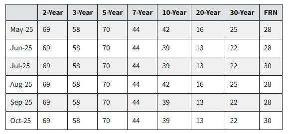 - An increase of the October 5-year new issue TIPS auction to $26 billion