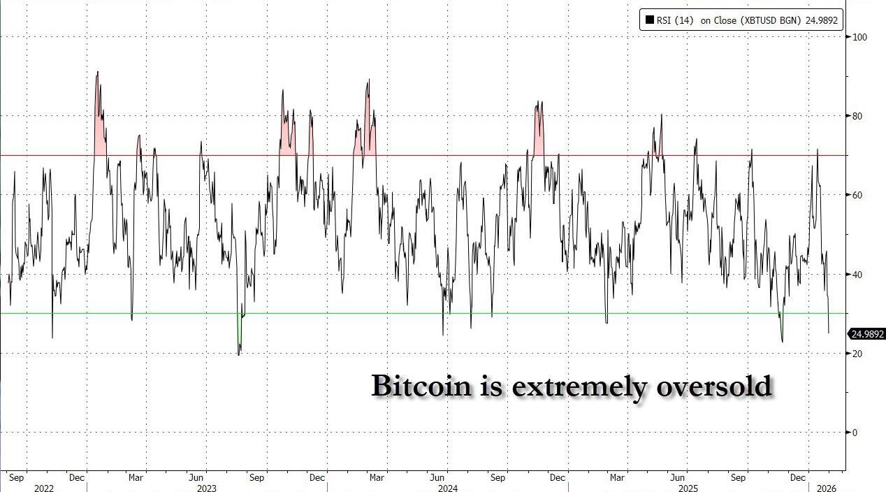 Which doesn't mean that it can't be even more oversold: after all, the market is now convinced that Kevin Warsh will hike rates as soon as he can, which is why we warned that appointing Warsh would collapse Trump's crypto empire on very short notice.