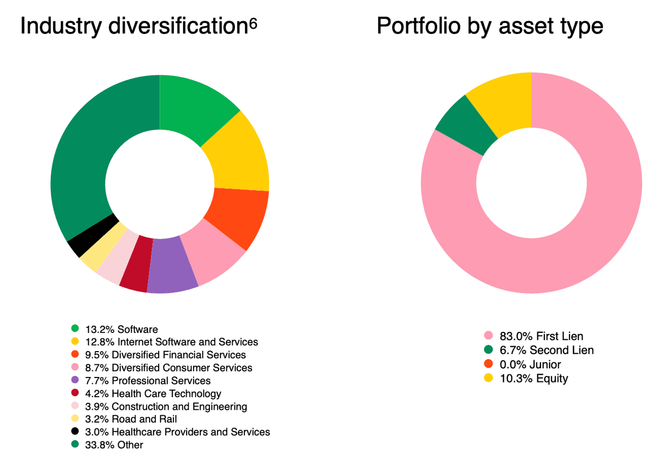 A TCPC fact sheet published Sept. 30 shows the fund holds 83% first-lien exposure across software, internet software and services, financial services, and other professional services.