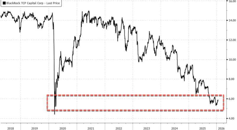 BlackRock TCP Capital Corp., a publicly traded private-credit fund structured as a business development company, filed an 8-K with the SEC late Friday afternoon, disclosing a 19% markdown in net asset value as troubled loans weighed on performance. The move marks one of the first major private credit signal woes of the new year.