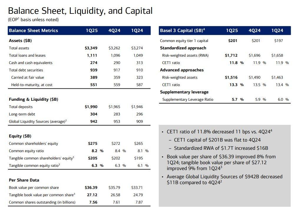 - Loans $1.11 trillion, up 5.9% YoY and above the estimate $1.1 trillion
