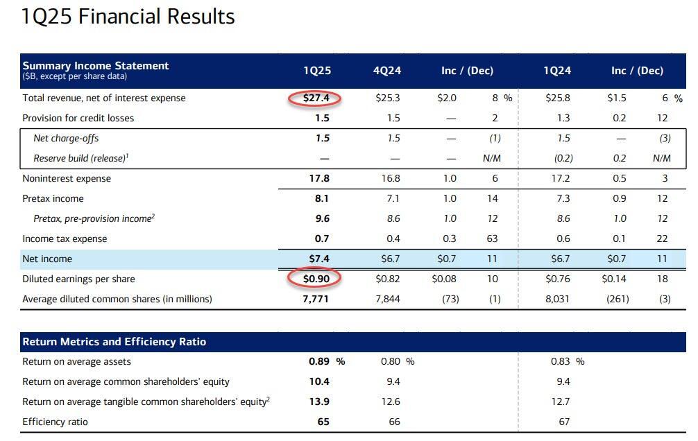 - “Most importantly, BAC maintained its prior guidance for NII to increase throughout 2025 and finish 4Q25 at ~$15.5-$15.7b, even while now incorporating 4 Fed cuts of 25bps each into the guide”