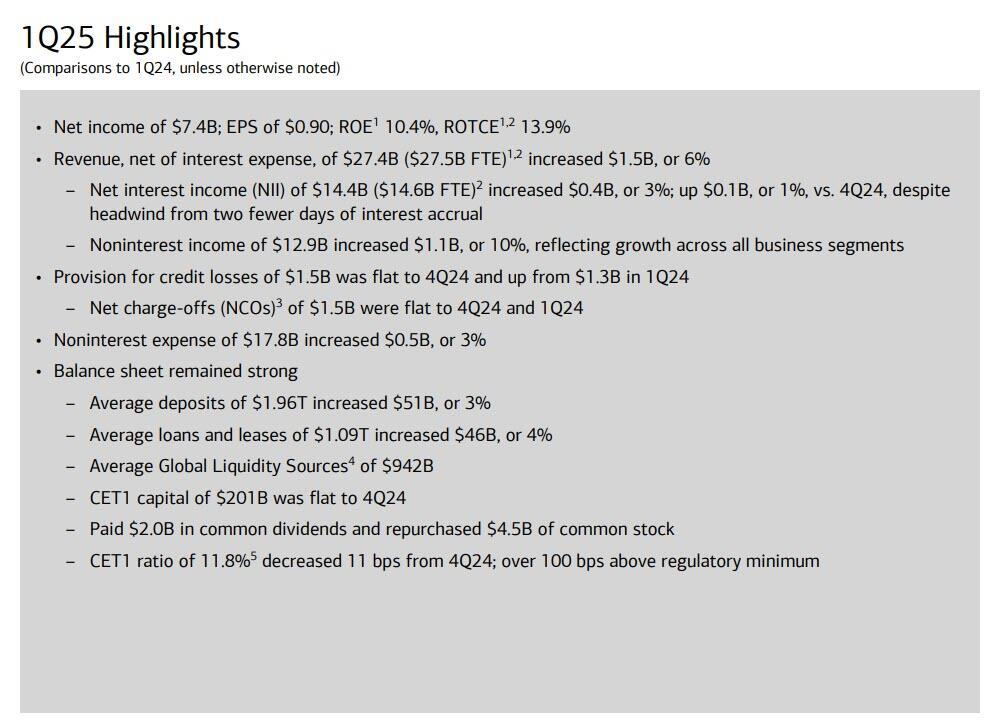 - Net interest income FTE $14.59 billion, estimate $14.57 billion