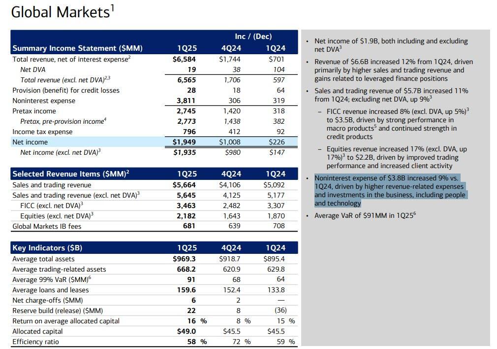 - Pre-provision net revenue beat Citi estimates, particularly strong in equities and net interest income; credit trends solid