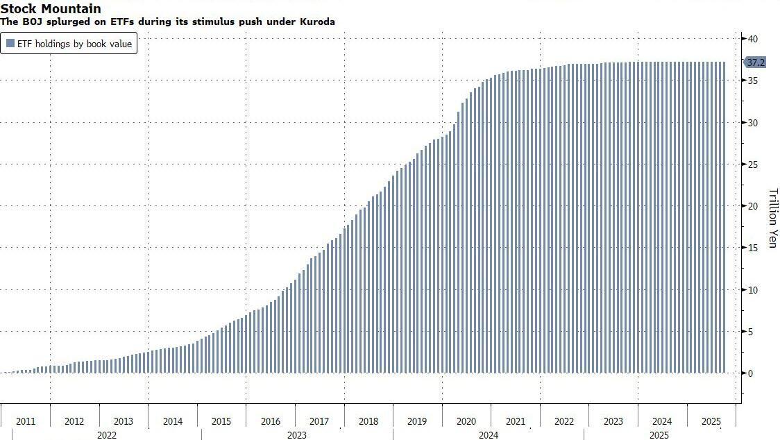 Sales could begin early next year, Bloomberg reported citing a person familiar with the matter. In any case, the glacial pace of selling will take a loooooong time because the BOJ is terrified markets can frontrun its liquidations and send the local stock market crashing.