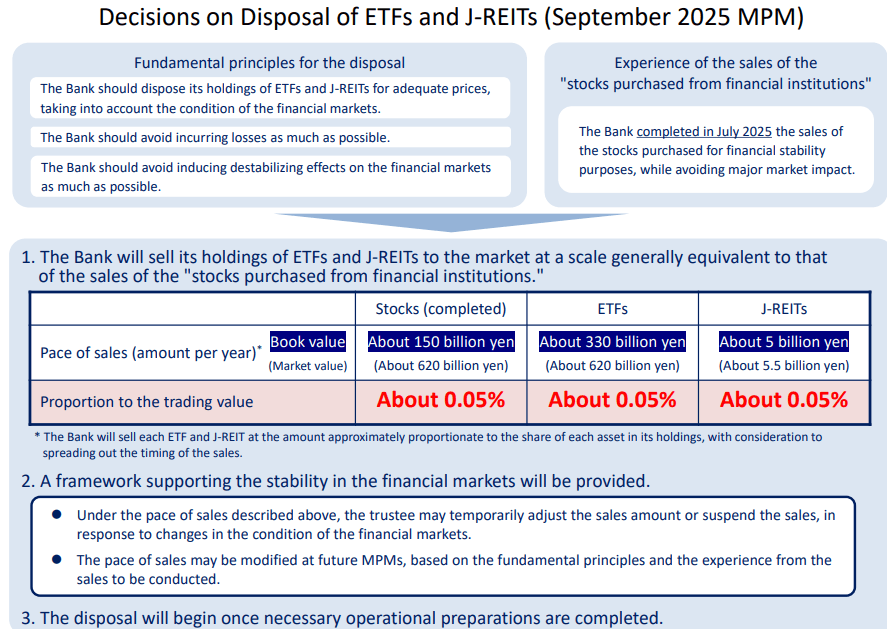 While at the BOJ's proposed rate it would take more than a century to sell, stocks fell as it marked the first time the BOJ has laid out a plan for offloading the assets accumulated over years of ultra-easy monetary policy.
