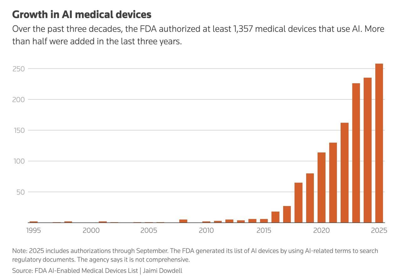 The Reuters piece notes that concerns about TruDi are part of a broader pattern. By 2025, the FDA had authorized more than 1,300 medical devices that use artificial intelligence, roughly twice as many as just a few years earlier. A review by researchers found that many of these products were later recalled, often within a year of approval. The recall rate for AI-based devices was about double that of similar technologies without machine learning.