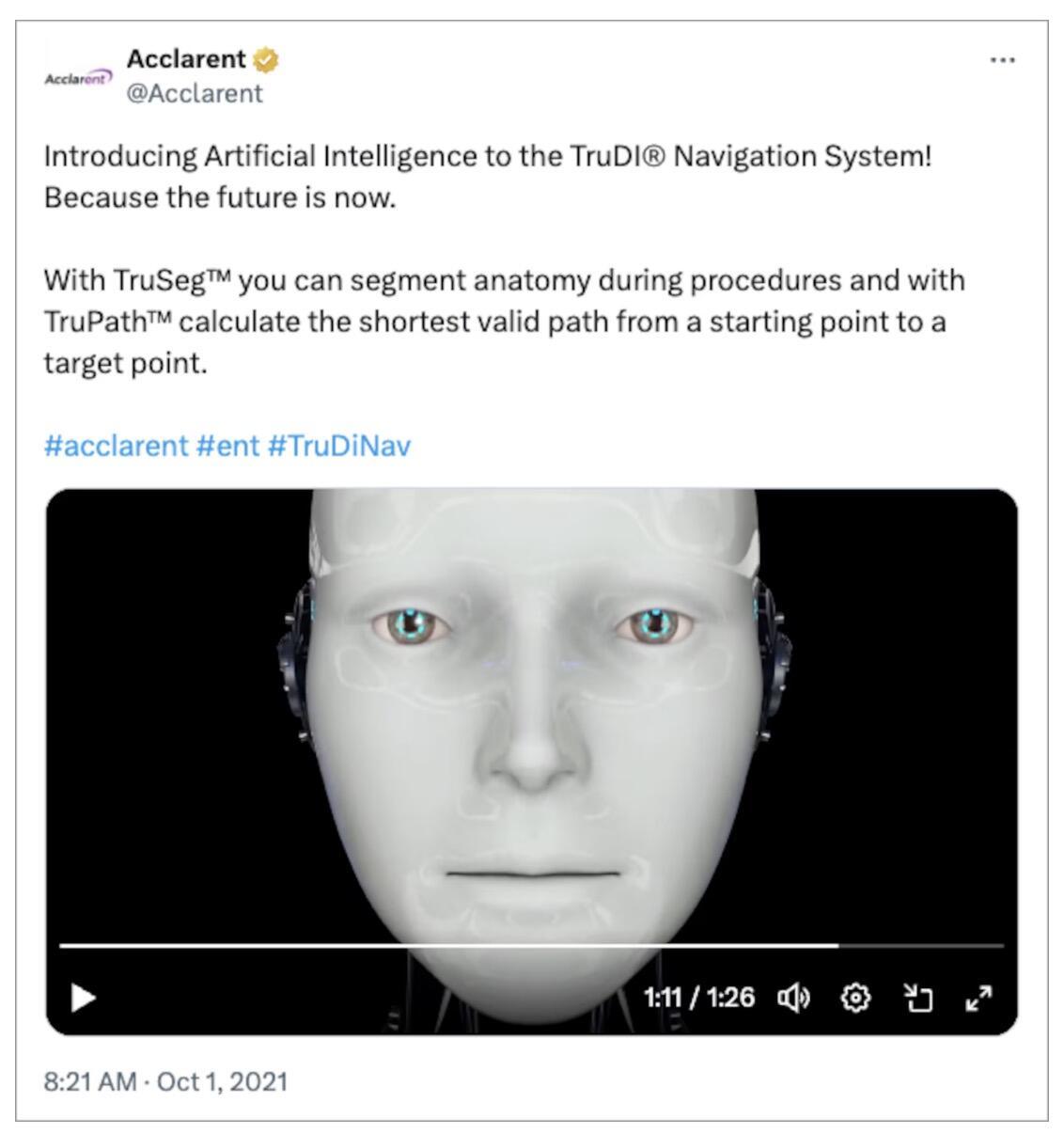 One example involves Acclarent, a subsidiary of Johnson & Johnson, which added machine-learning software to its TruDi Navigation System in 2021. The company described the update as “a leap forward,” saying it would help ear, nose, and throat surgeons better guide their instruments during sinus procedures.