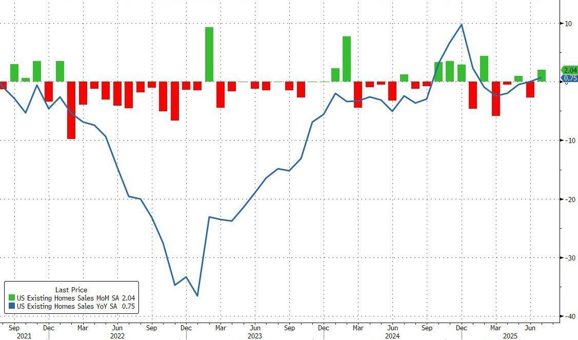 After a modest drop in June which pushed them down near 15 year lows, expectations were for existing home sales to continue their decline in July as mortgage rates ticked up. Analysts were wrong, however, as sales of existing homes rebounded 2.0% MoM in July (vs -0.7% MoM expected), leaving existing home sales unchanged year-over-year...