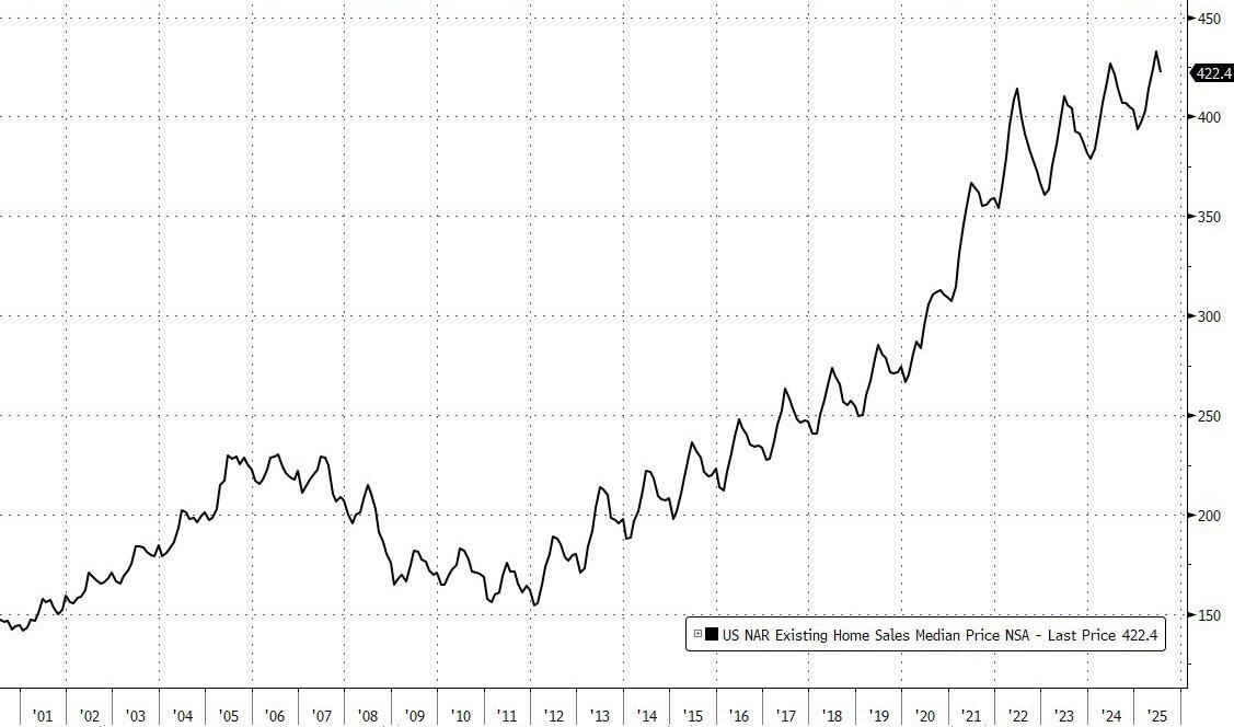 The median price dipped modestly from last month's record $432,700 to $422,400, up 0.2% YoY and the 25th consecutive month of year-over-year price increases.