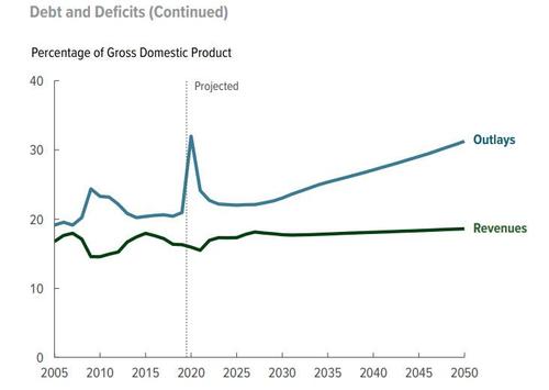 Unfortunately, this also meant that the CBO's already catastrophic long-term debt forecast had become woefully outdated, which is why we were looking forward to today's latest Long-Term Budget Outlook report from the CBO.