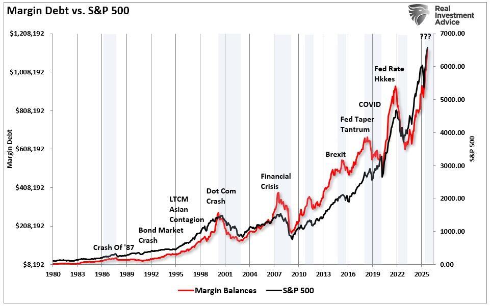 During extended upward-trending markets that reward risk-takers and punish caution, everyone is a “bull market genius.” That dynamic flips investor psychology and, over time, creates a false sense of control. As the market continues to climb, risk appears to vanish, and investors believe that nothing can go wrong, leading them to take on increasing levels of risk and leverage. After all, why wouldn’t you if there is “no risk” in investing?