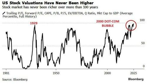 The bearish case begins with a critical point: many of the forces that drove 2025’s rally are either fading or already fully priced in. Notably, whether it is valuations, weakening economic indicators, or building speculative risks, the current market momentum may be blinding market participants to deeper structural cracks. However, let’s dig into a few of the issues.