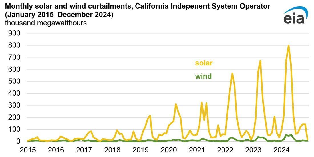 California Grid Operator Increasingly Curtailing Solar And Wind-Powered Electricity Generation