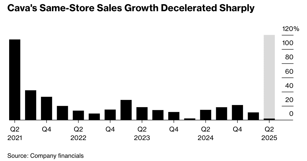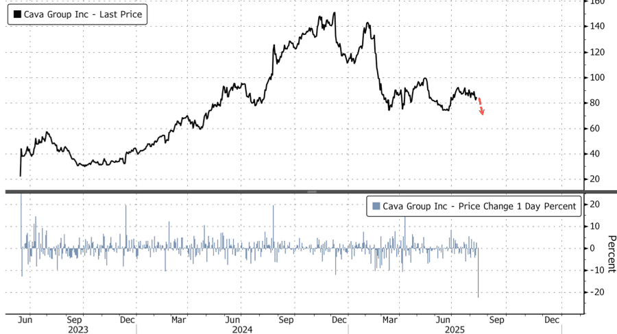 Shares of Cava Group crashed in premarket trading after the Mediterranean fast-casual restaurant chain slashed its full-year same-store sales growth forecast to a maximum of 6%, versus the previous estimate of 8%.