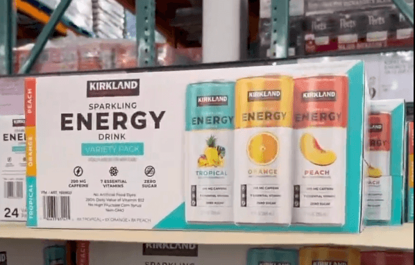 "Kirkland Signature Sparkling Energy Drink is now showing up in Costco warehouses in a variety pack of 24 cans, with eight cans each of three different flavors: Tropical, Peach, and Orange," Stack3d wrote in a note on Monday afternoon.