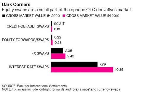 CFDs linked to stocks (with a gross market value of around $282 billion at end June 2020) are among bespoke derivatives that investors trade privately between themselves, or over-the-counter, instead of through public exchanges. This is exactly the kind of hidden risk that amplified the losses during the 2008 financial crisis.