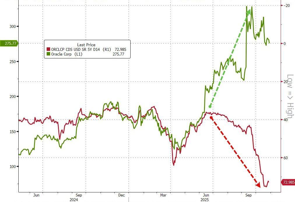 And the canary in the coalmine is the surge in credit spreads that is evident in Oracle as we remind readers that both of these measures are directly linked to asset valuations and volatilities of the underlying business... meaning one of them is 'wrong'.