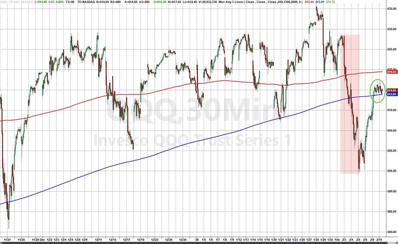 Starting on Friday, we have seen a sudden reversal from panic-selling to panic-buying in tech stocks, which has lifted Nasdaq back above its 100DMA...