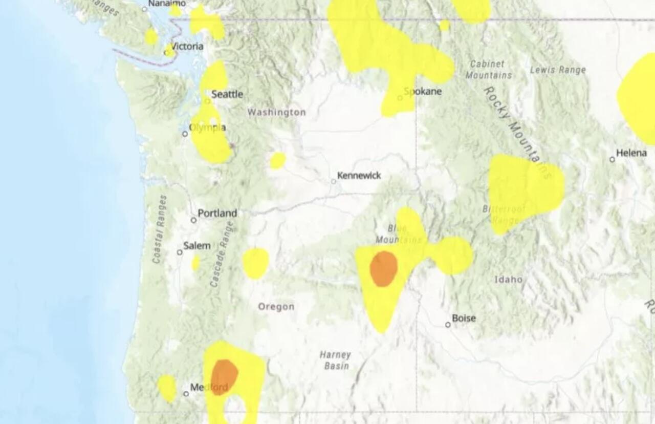 Affected areas include Baker City and the Wood River Valley, northeast of Medford, according to Newsweek.