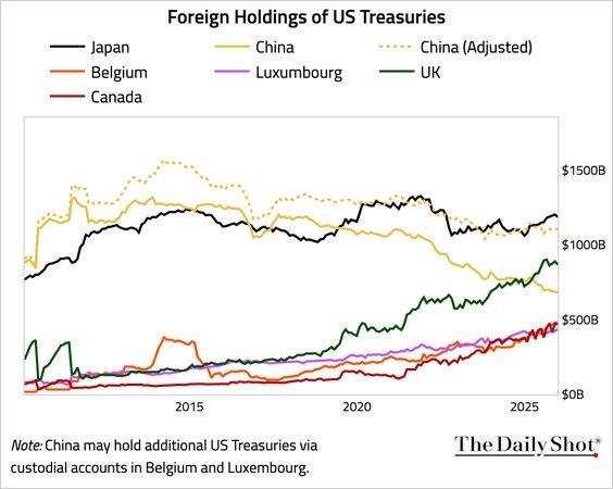 This is not a conspiracy. It is plumbing. One of the primary reasons that China uses Belgium for custodial purposes, besides avoiding geopolitical risk, is that the Euroclear Bank is based there and sits at the center of cross-border settlement and collateral mobility. Clearstream’s international depository is based in Luxembourg and serves the same global institutional client base. When a central bank or a state institution wants to hold a large Treasury portfolio with flexible settlement and collateral options, these hubs help address operational challenges.