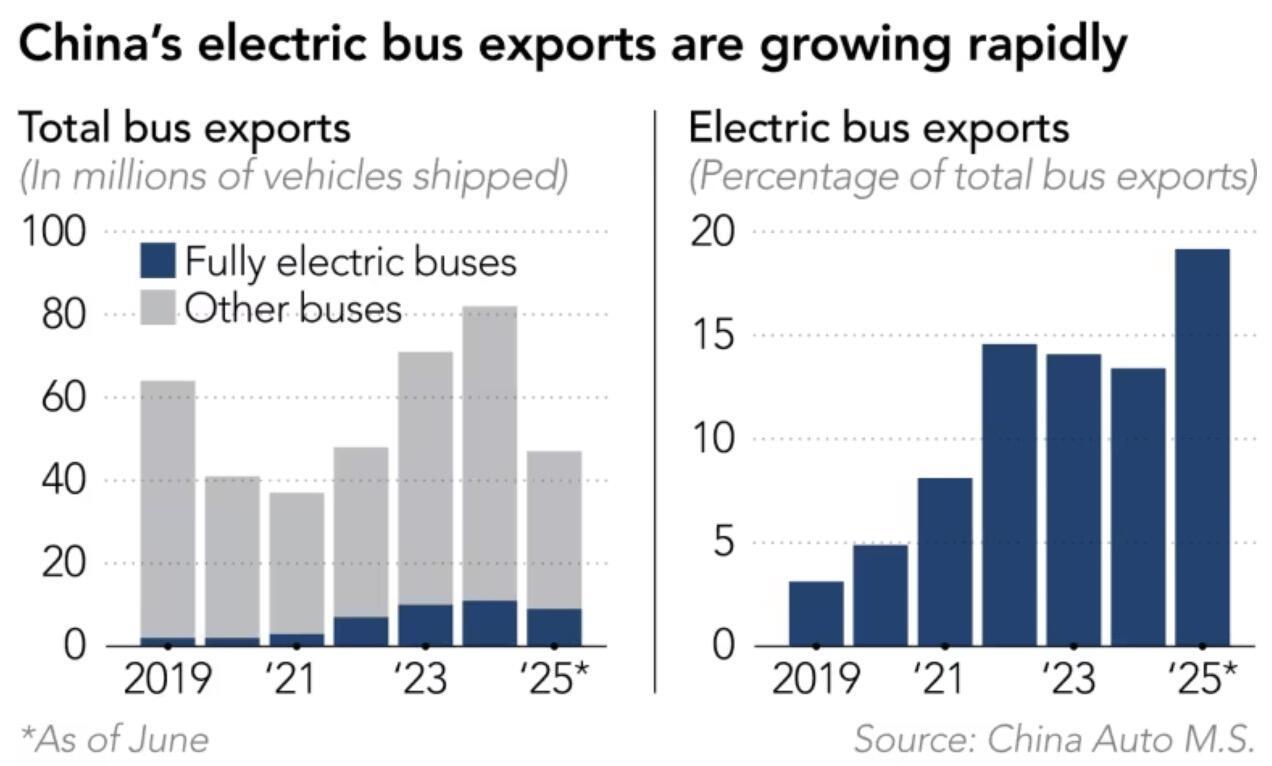 Nikkei writes that Chinese firms dominate the global electric bus export market, led by Yutong and King Long. In the first half of 2025 alone, China exported about 9,000 electric buses worldwide — a 124% increase from a year earlier. Southeast Asia still represents a small share of that total, but demand is accelerating.