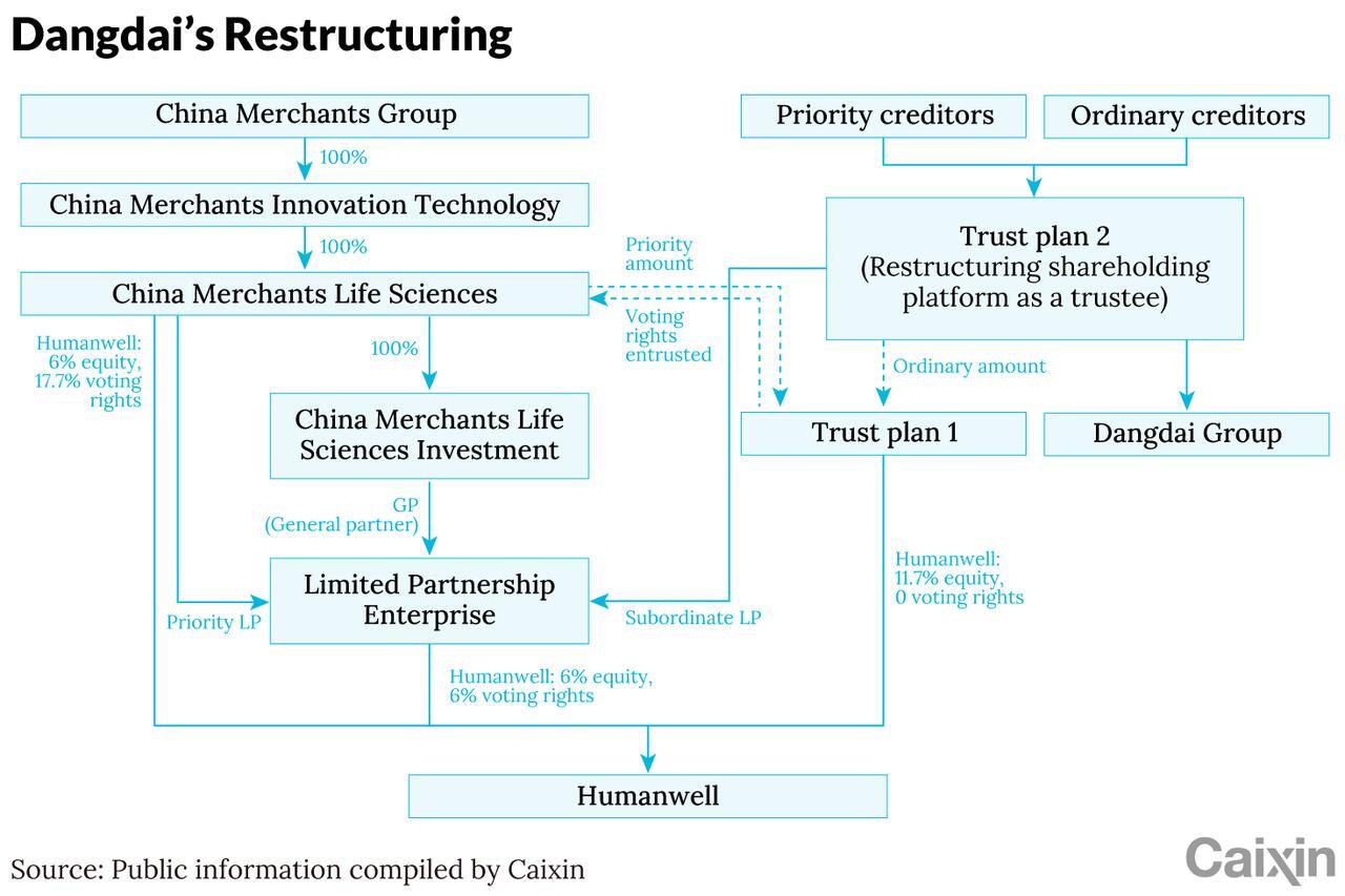 Only Humanwell remained salvageable. After failed attempts at private deals, Dangdai entered court restructuring. China Merchants Group acquired control with an 11.8-billion-yuan investment, a record in Chinese pharma bankruptcy cases. Creditors with claims under 3 million yuan were repaid in full; others would recover only if Humanwell’s stock rose by over 70%.