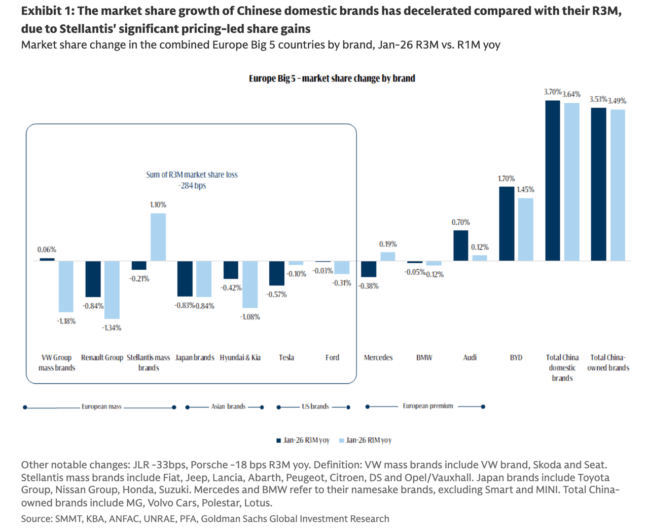 Goldman analyst Christian Frenes released the latest Chinese OEM Competition Monitor, which covers January registrations of Chinese EVs across Europe.