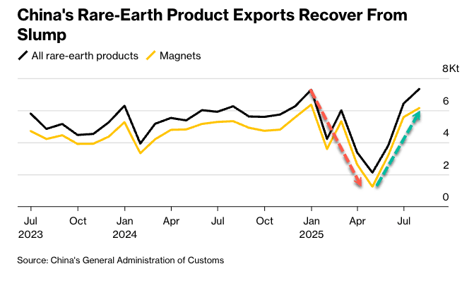 Just a day earlier, China also tightened export controls on rare earths. Beijing has already slowed shipments to the West since last year through new restrictions requiring proof that the materials won't be used for military purposes.