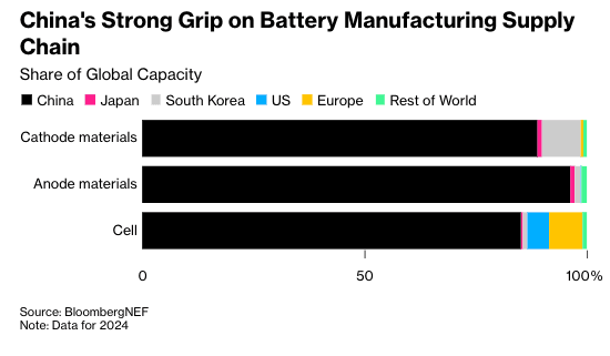 Bloomberg's graphic shows China dominates the global battery supply chain...