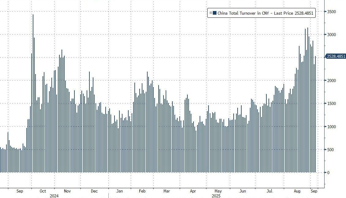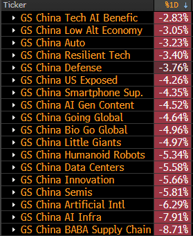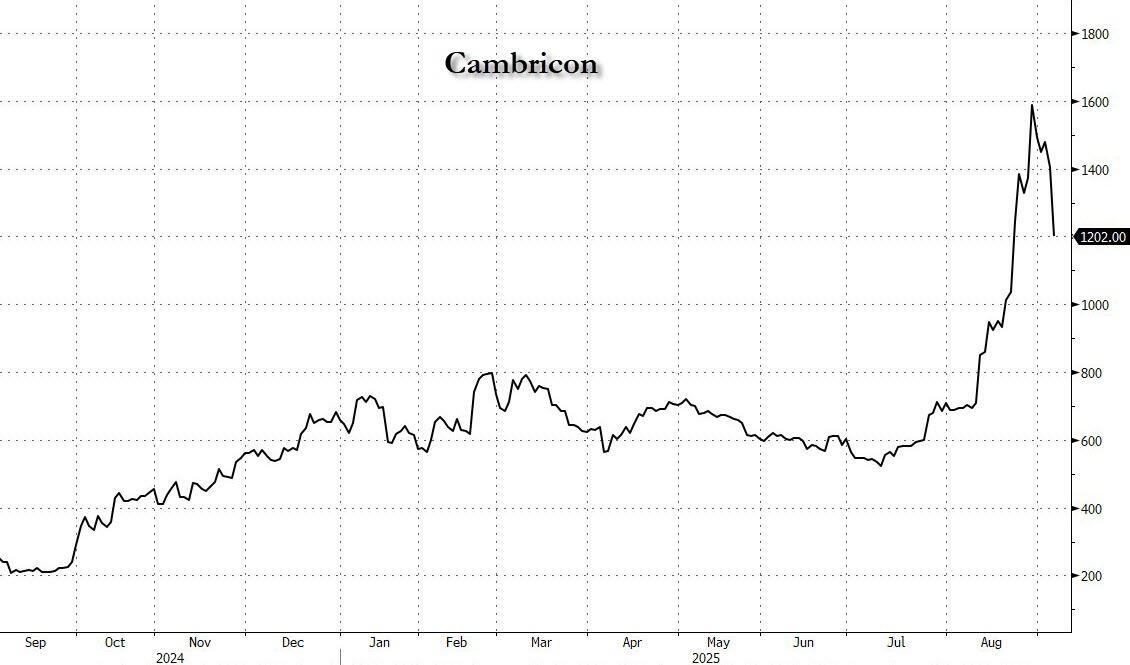 Cambricon (which we profiled two weeks ago as China's Nvidia) sank 14.5% on the day, bringing its YTD gains to just +82.7%